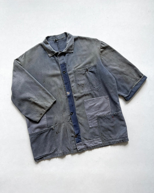 1960S FADED REPAIRED FRENCH HBT WORK JACKET (XL)