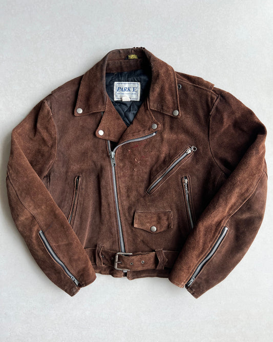 1980S PARK V SUEDE LEATHER BIKER JACKET (L)