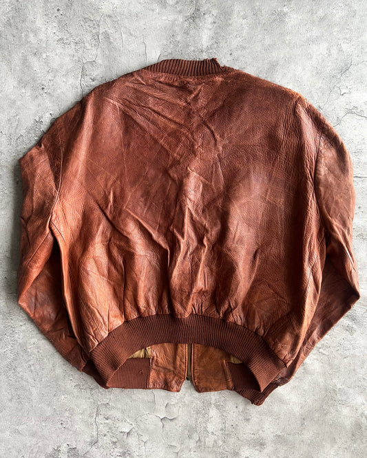 1970S FADED BROWN/MAROON LEATHER BOMBER JACKET (M/L)