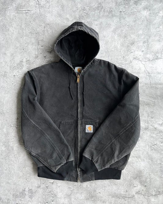 1990S FADED BLACK CARHARTT HOODED JACKET (L)
