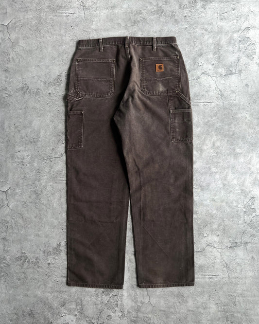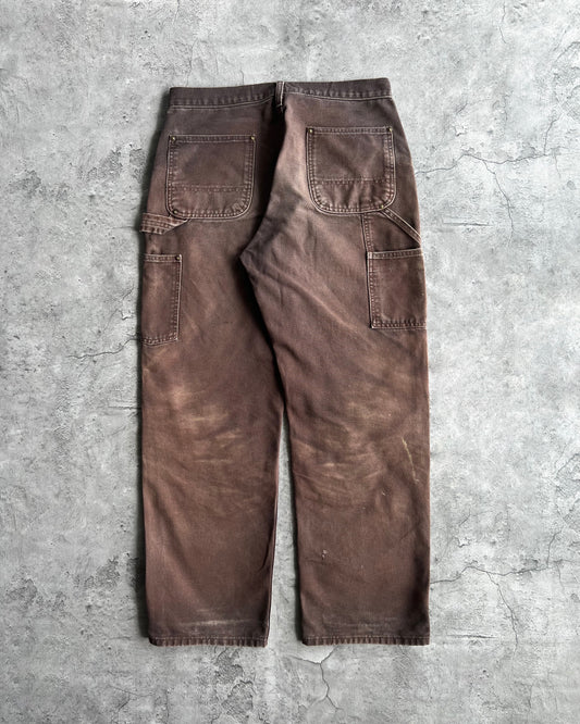 1990S FADED DARK BROWN CARHARTT DOUBLE KNEE PANTS (34X32)