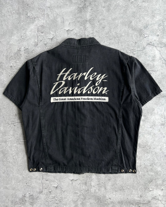 2000S FADED BLACK HARLEY DAVIDSON ZIP-UP WORK SHIRT (L)