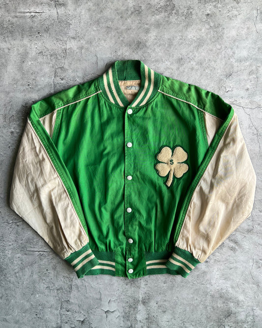 1950S GREEN SATIN FOUR LEAFS VARSITY JACKET (L)