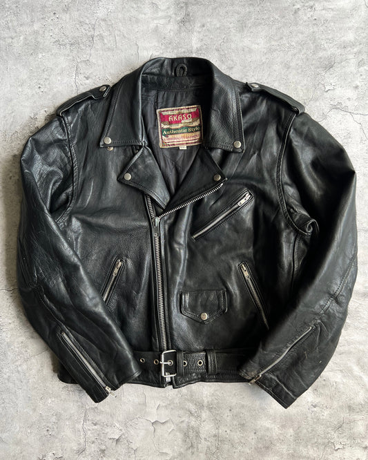 1980S BLACK BIKER LEATHER JACKET (M/L)