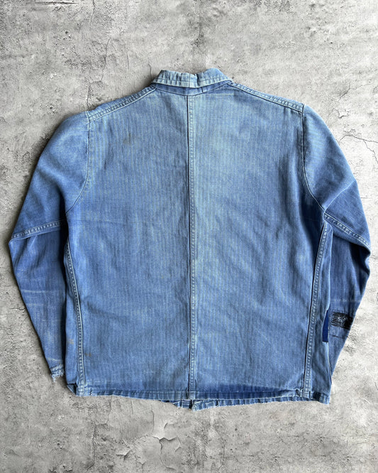 1950S SUN FADED HBT FRENCH WORK REPAIRED CHORE JACKET (L)
