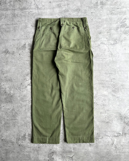 1960S REPAIRED OG-107 SATEEN US ARMY TROUSERS (32X33)