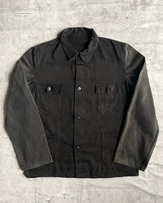 1970S BLACK MOLESKIN FRENCH WORKWEAR JACKET (M/L)