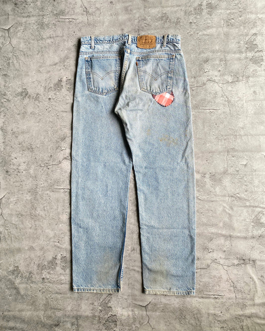 1990S LIGHT WASH LEVI'S 505 PATCHED JEANS (34X30)