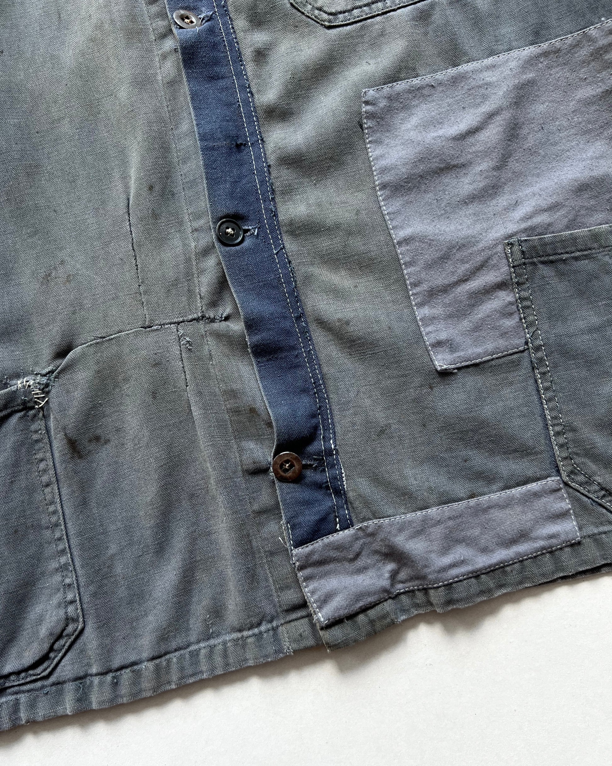 1960S FADED REPAIRED FRENCH HBT WORK JACKET (XL)