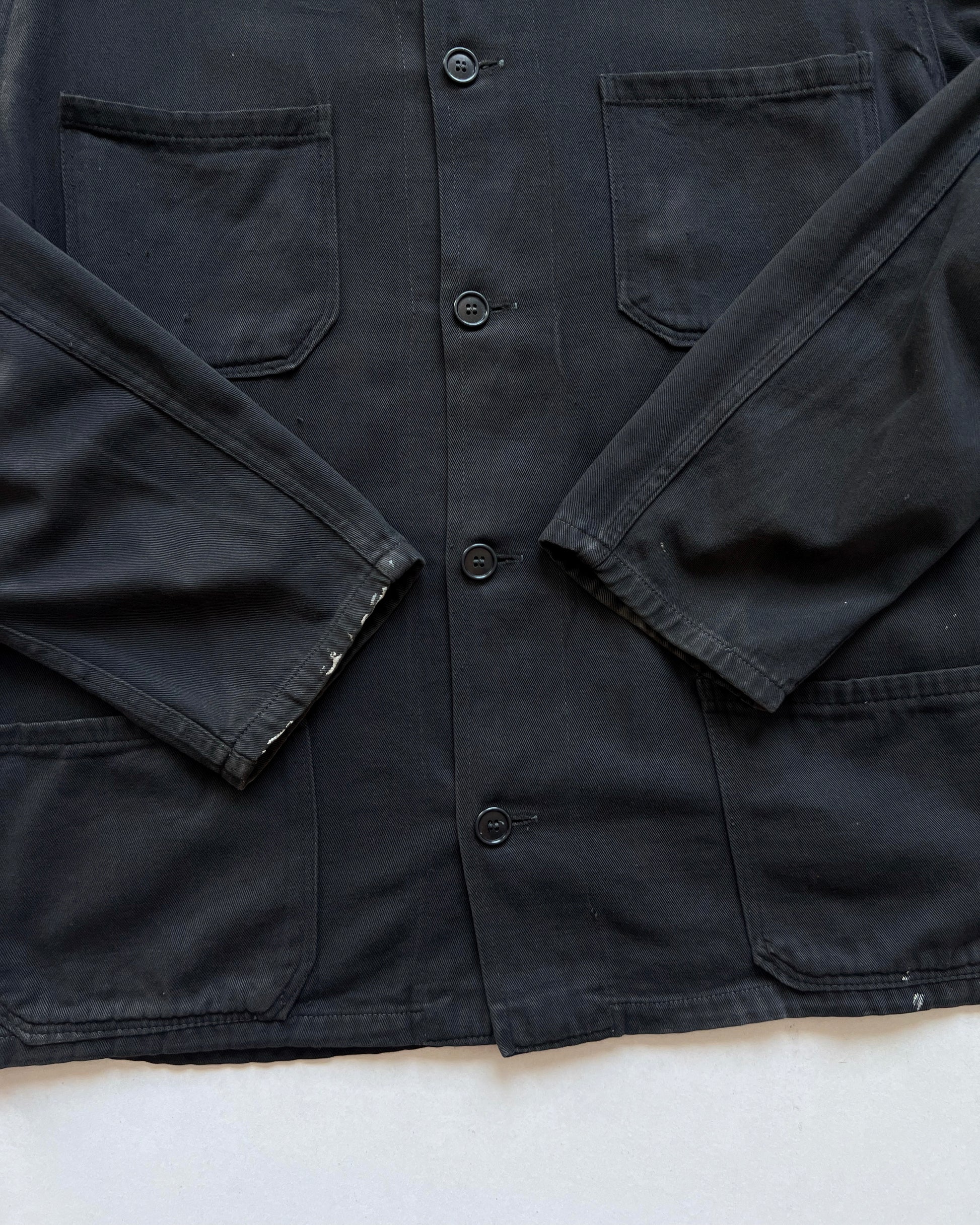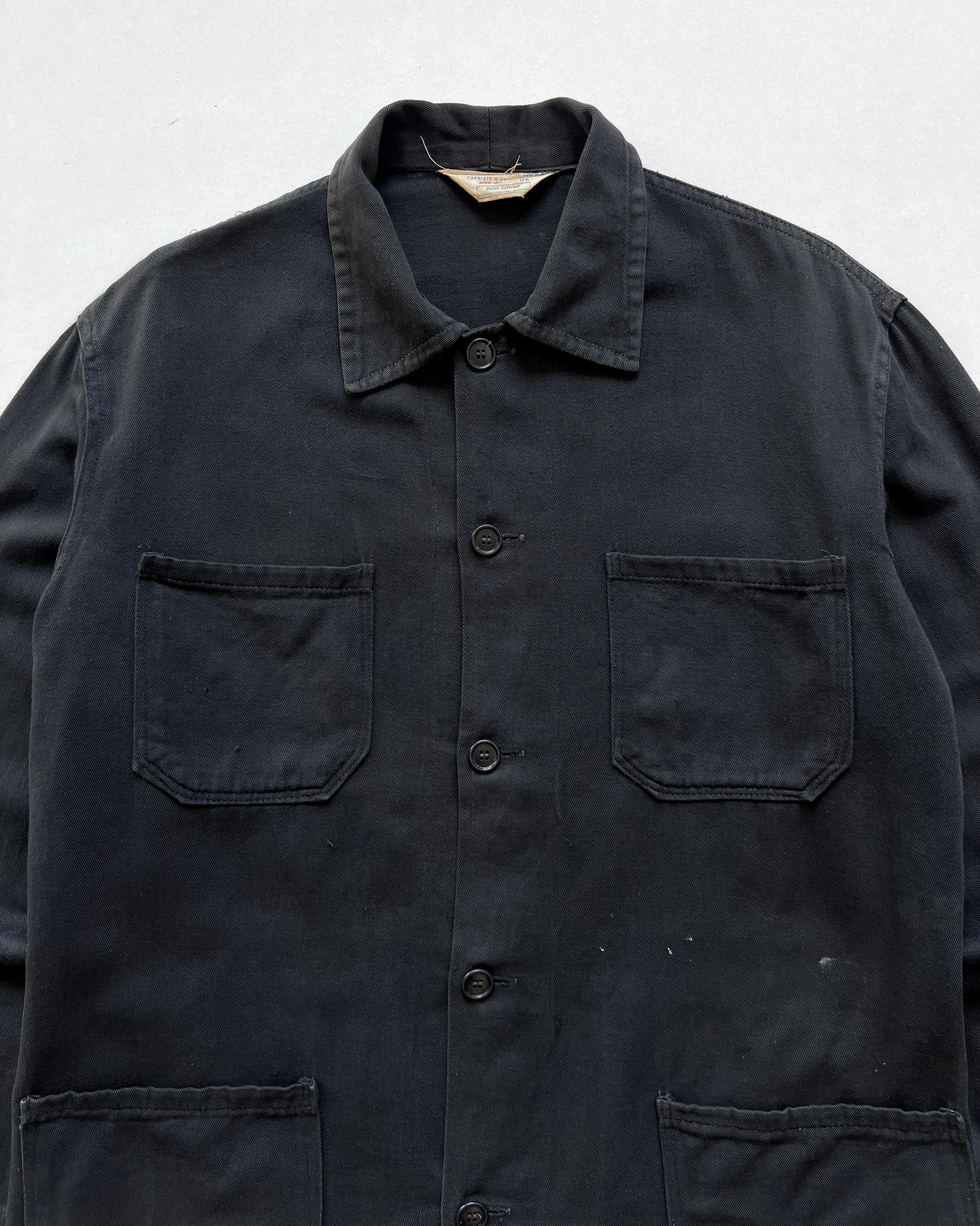 1970S FADED BLACK FRENCH WORK JACKET (L)