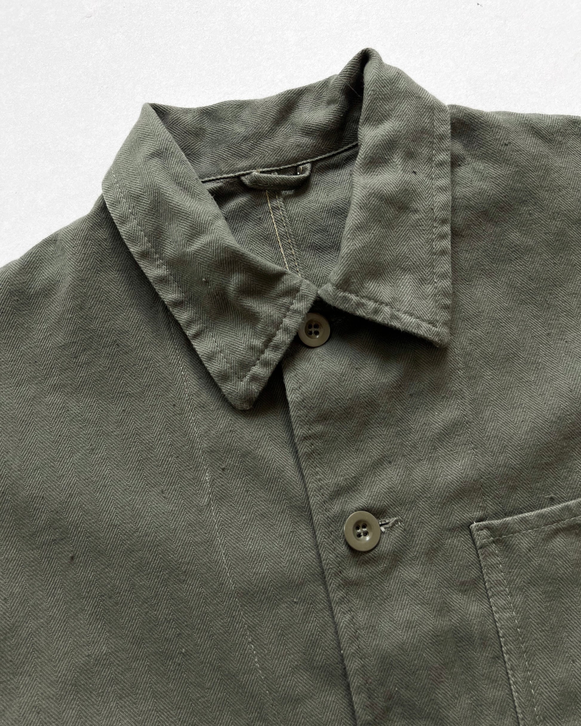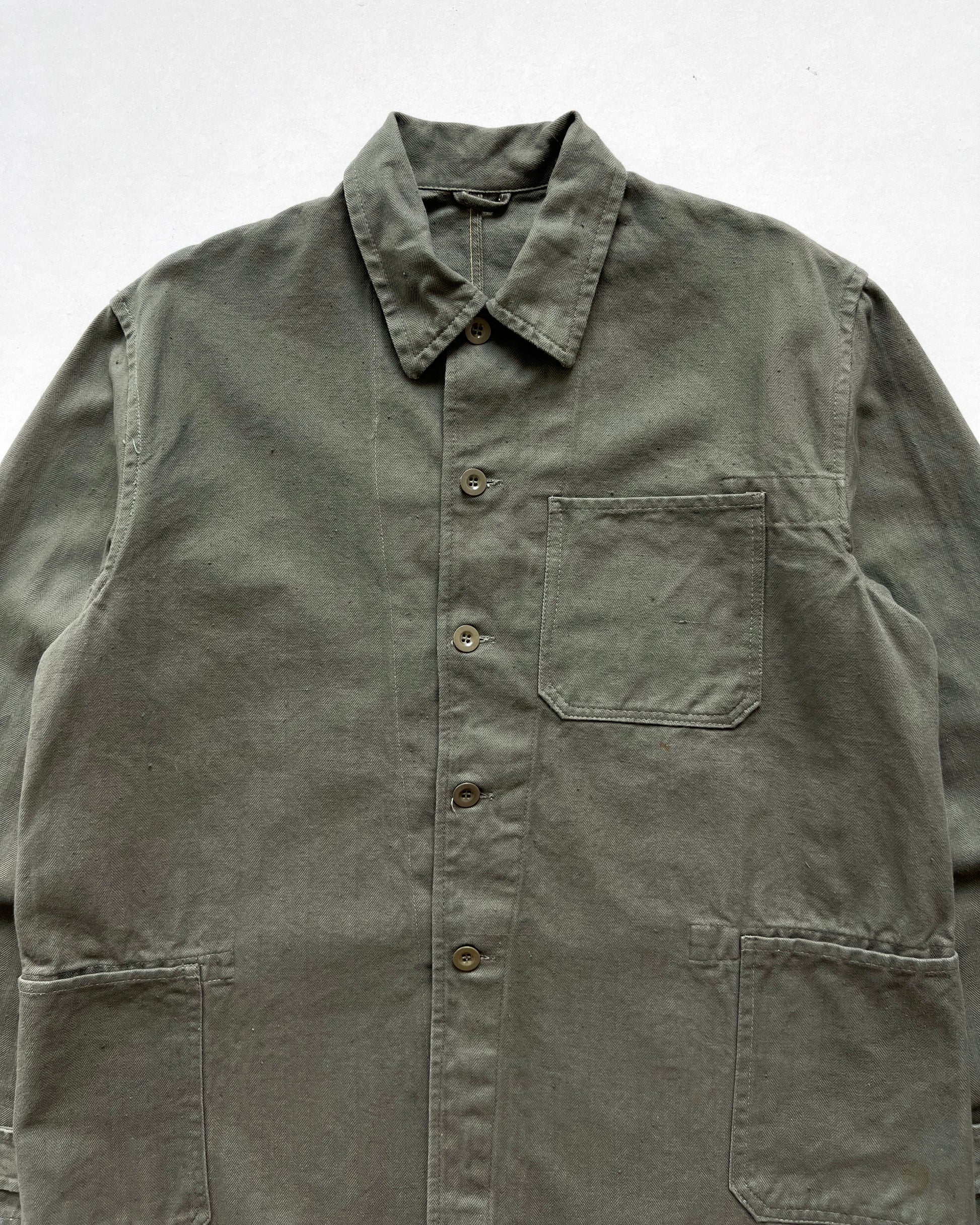 1970S OLIVE FRENCH HBT WORK JACKET (L)
