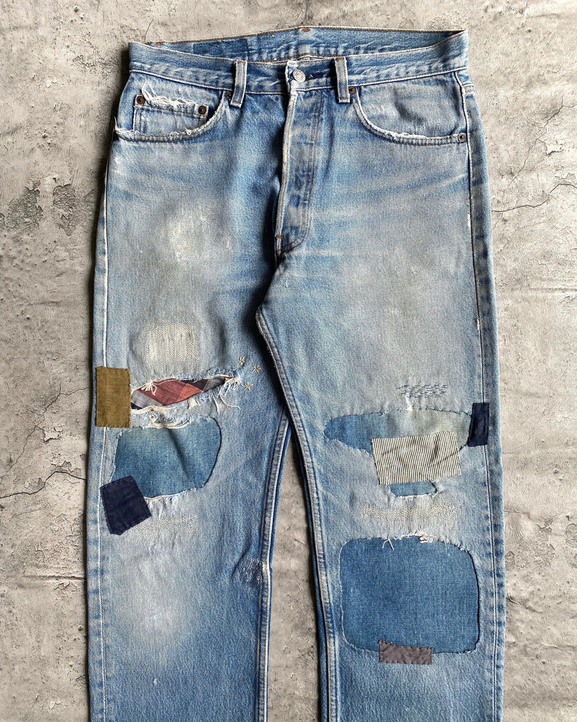 1980S FADED WASHED LEVI'S 501 PATCHED JEANS (33x38)