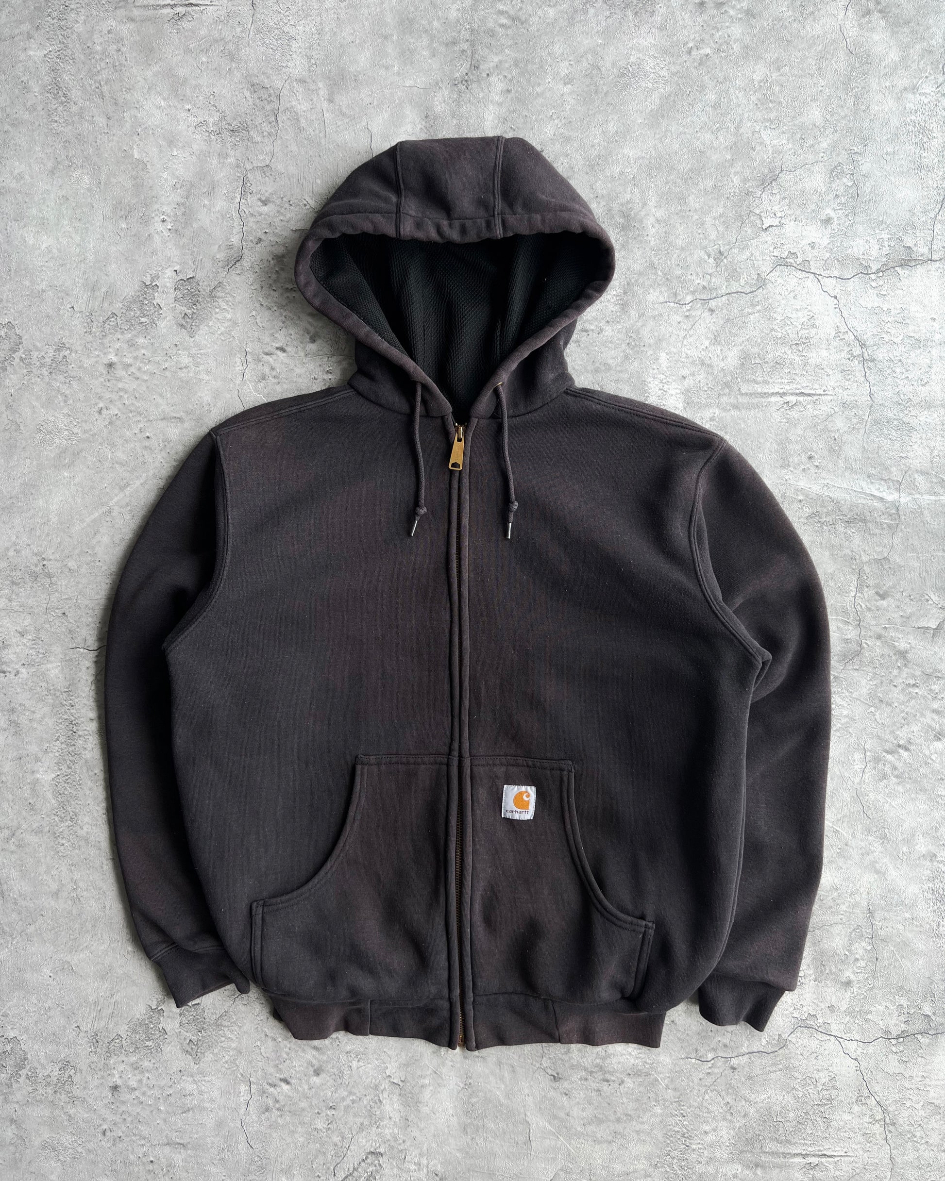 1990S FADED BLACK CARHARTT HEAVYWEIGHT LOGO ZIP-UP HOODIE (M/L)