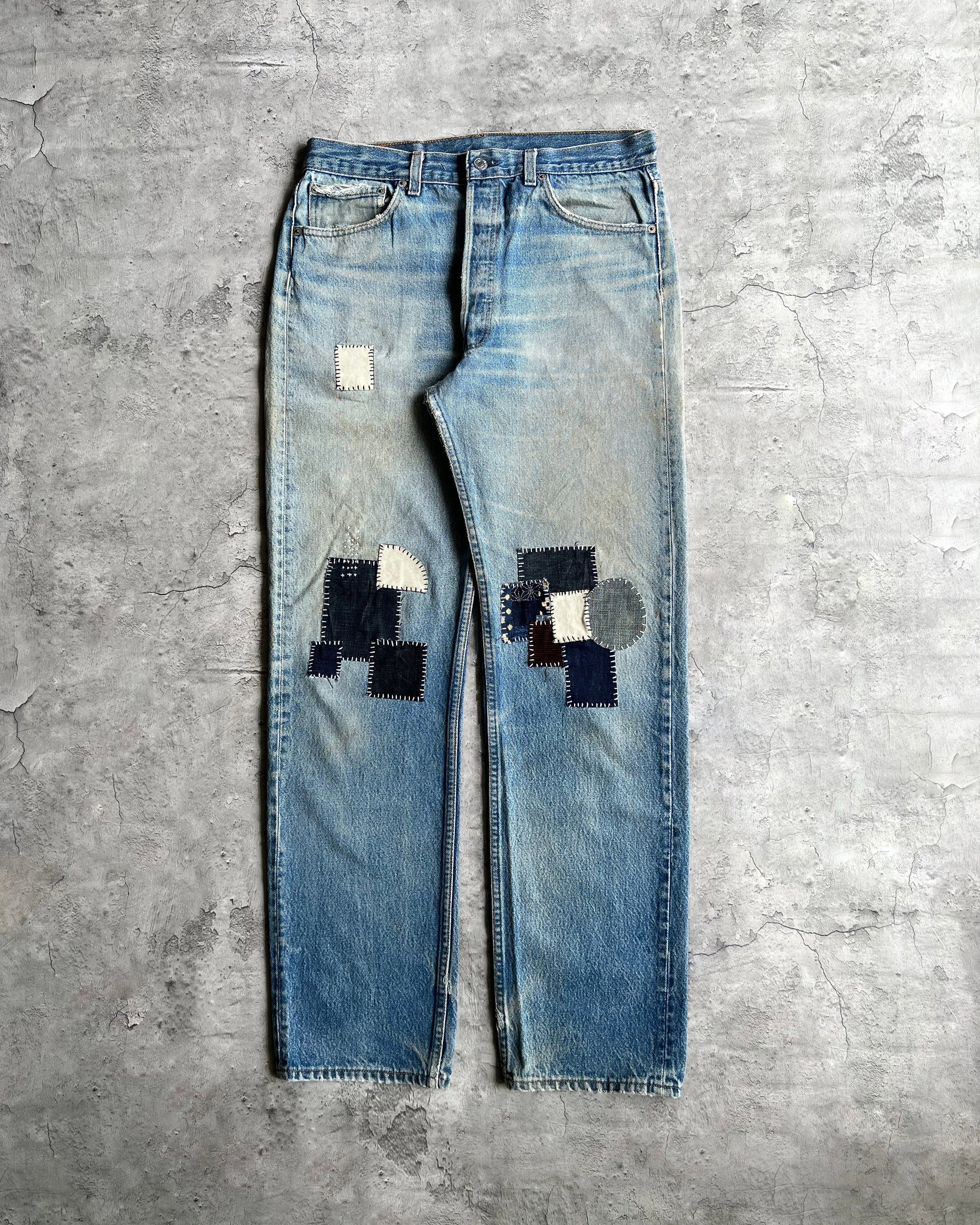1990S FADED WASHED LEVI'S 501 PATCHED JEANS (36X36)